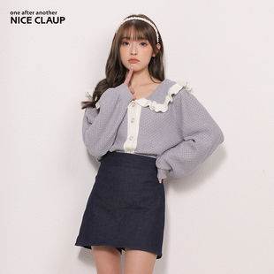 半高领设计感针织开衫 新款 洋气紫色立领方扣毛衣女2025年春季 韩版