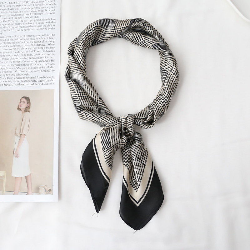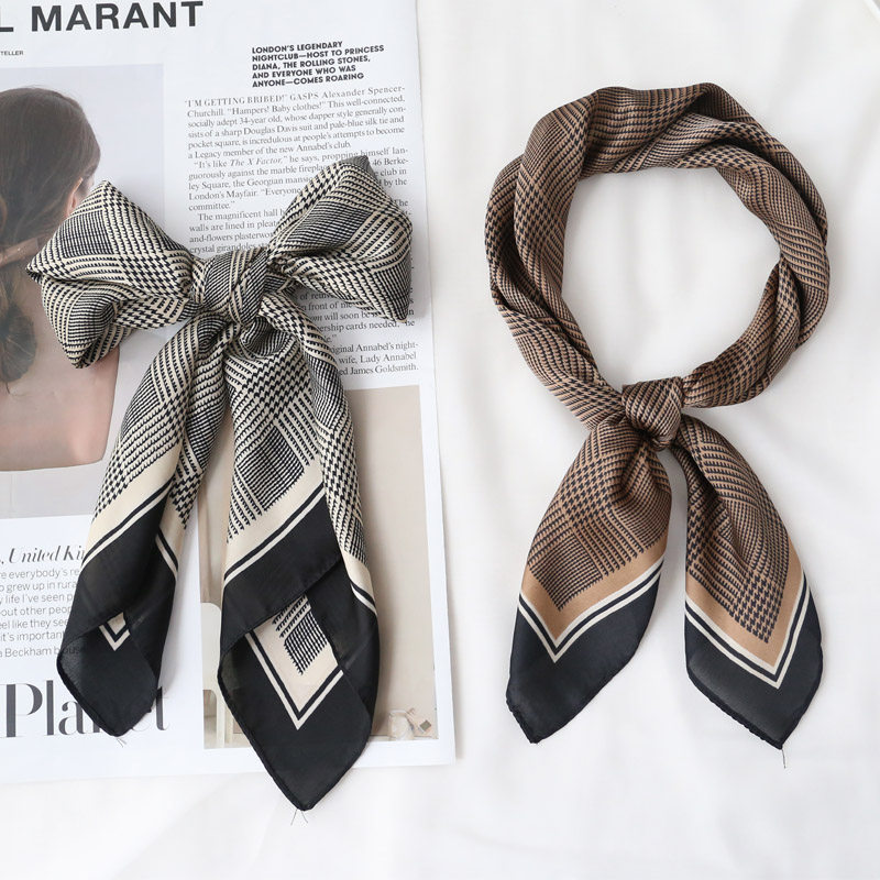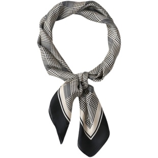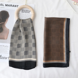 装 韩版 仿真丝薄款 小围巾丝巾 饰领巾防风护颈 千鸟格春秋百搭经典