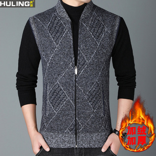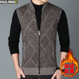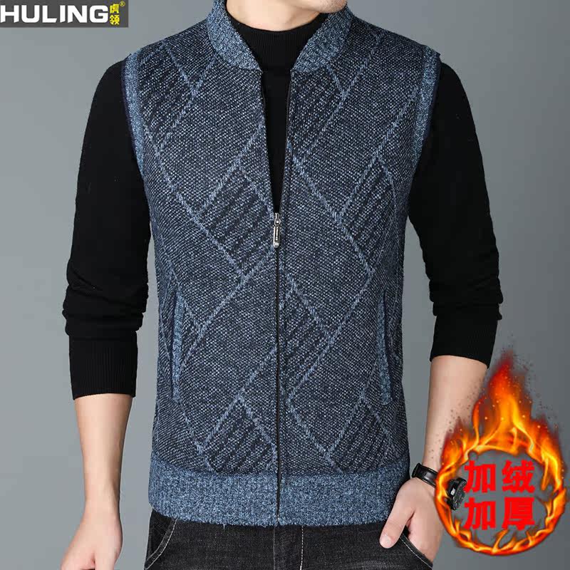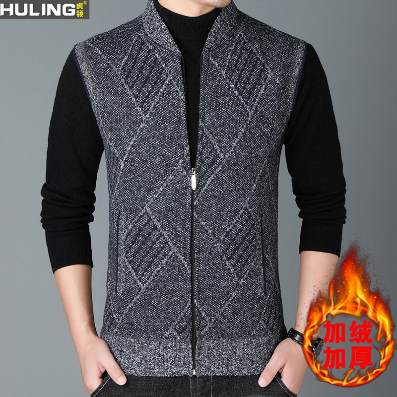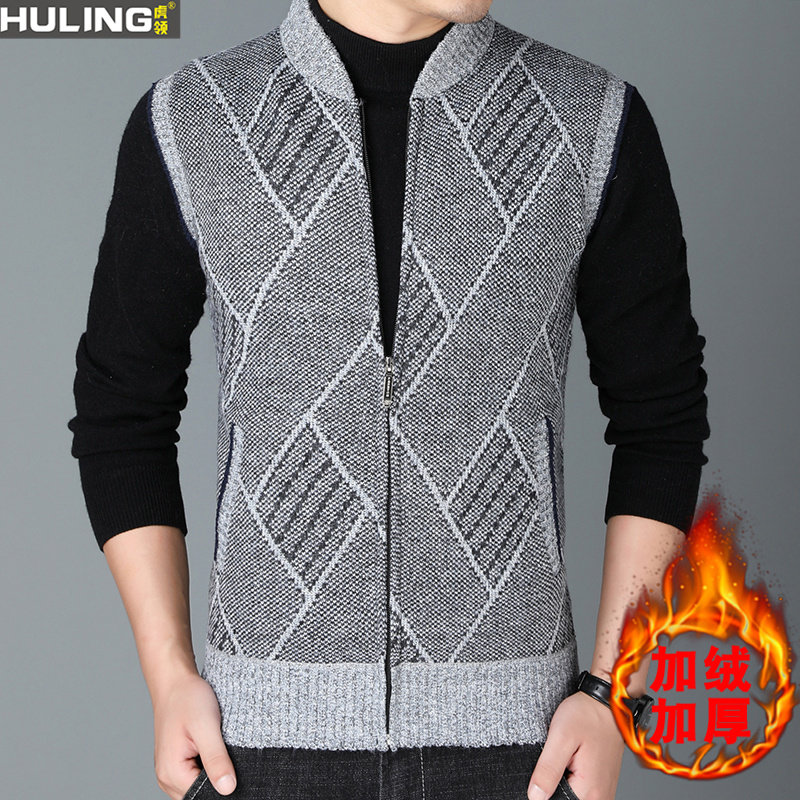 加绒开衫 秋冬季 保暖毛衣外套男马甲针织衫 男装 夹克潮 加厚立领韩版