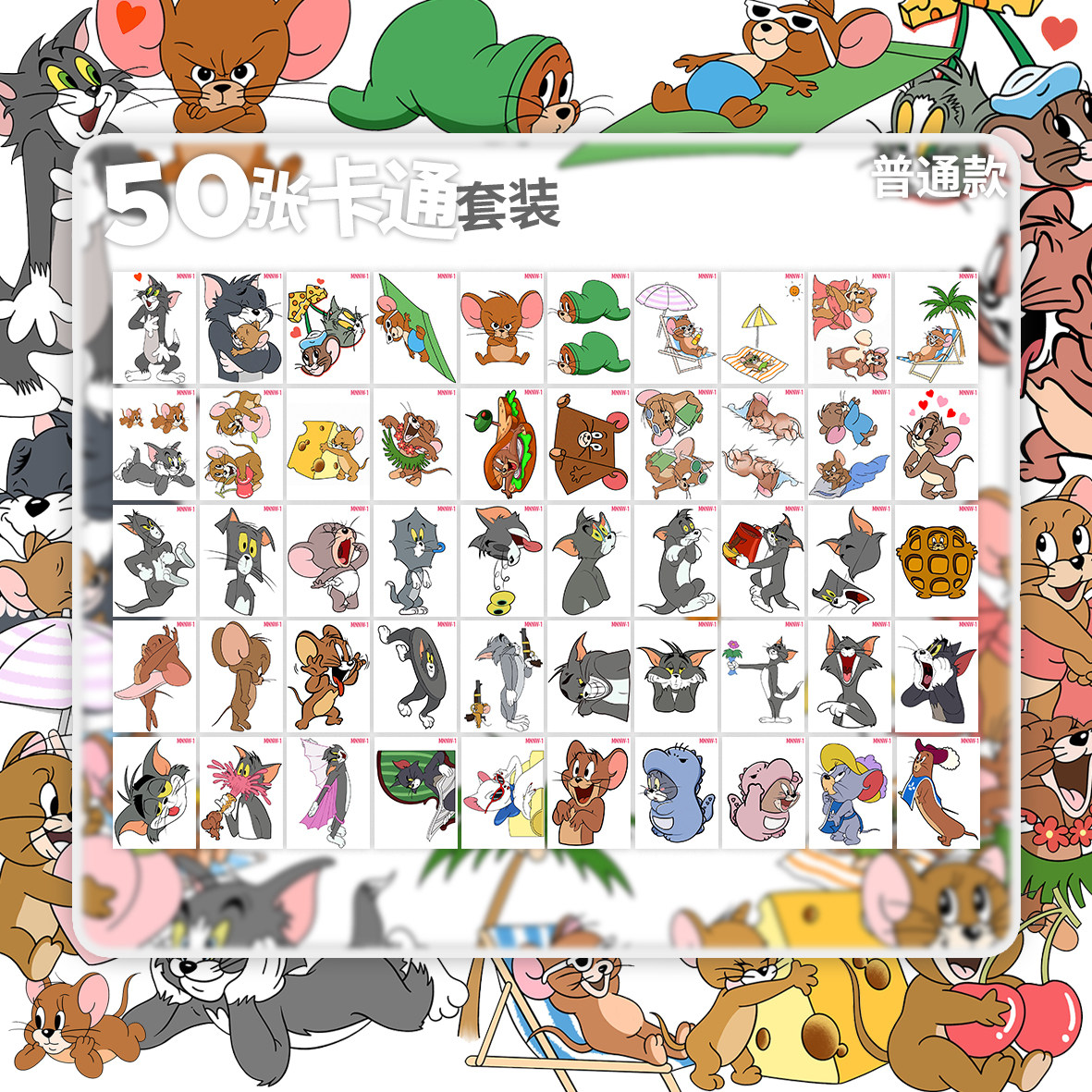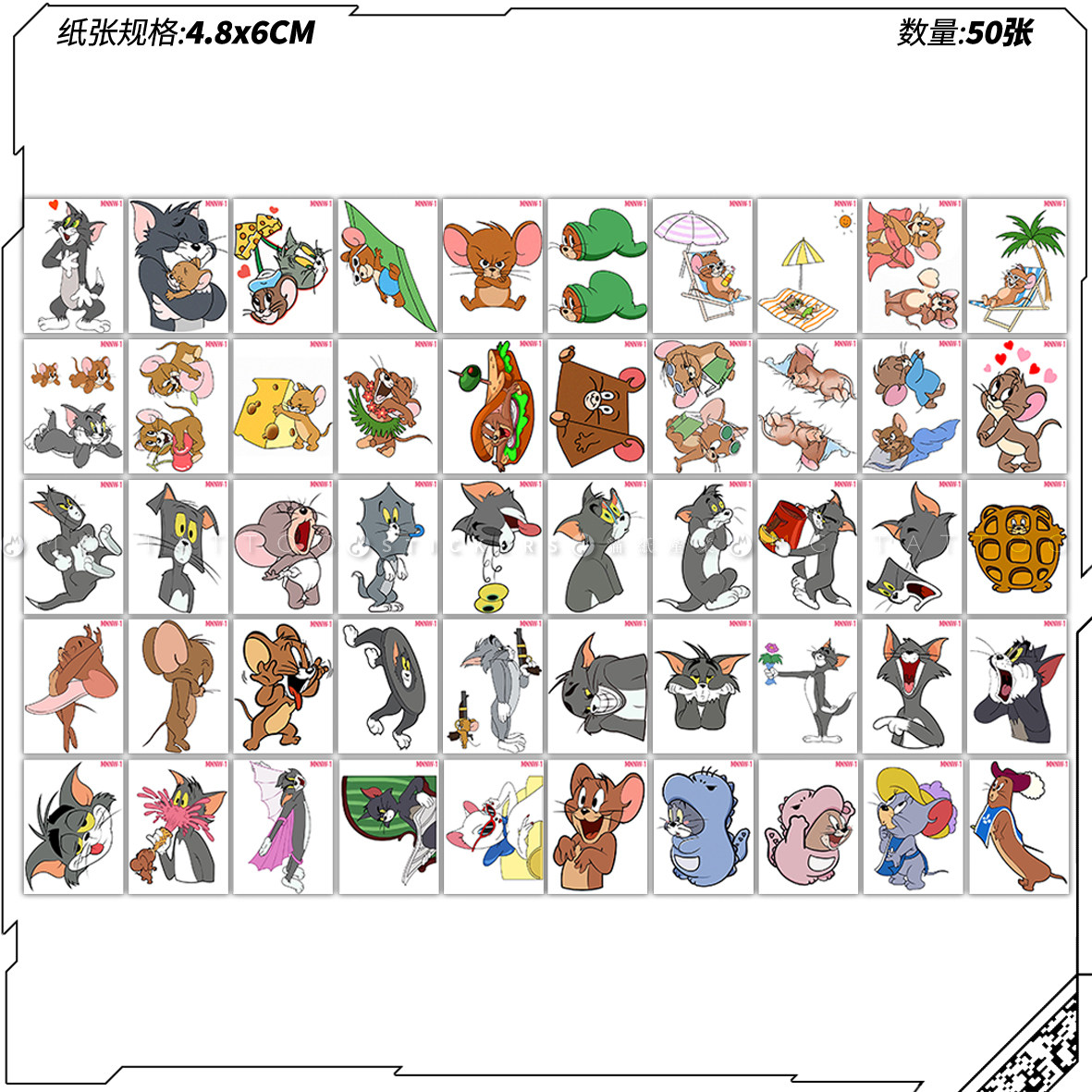 50张 卡通迷你可爱趣味猫和老鼠合集图案防水彩色男女纹身贴 包邮