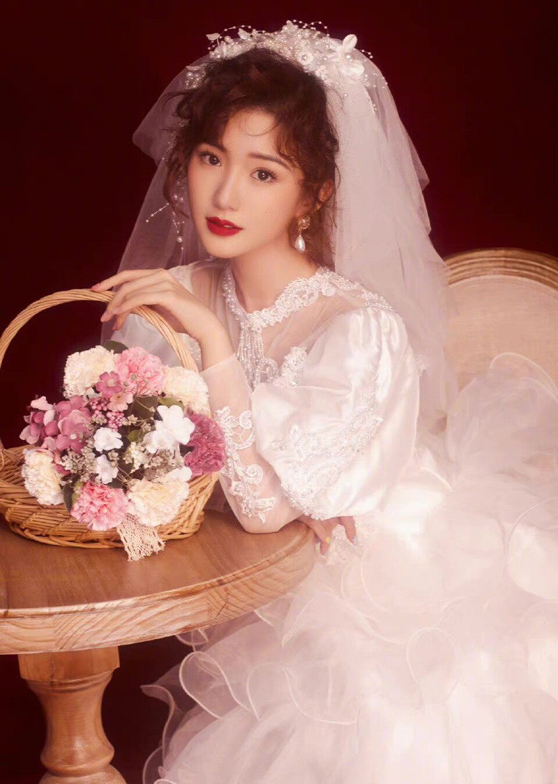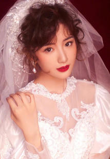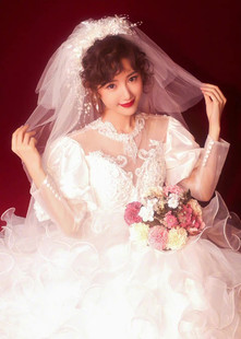 80年代港风复古珠子头纱新娘结婚拍照头饰婚纱摄影楼跟妆模特饰品