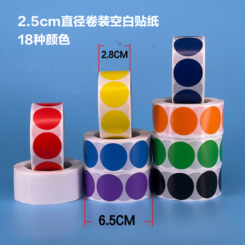彩色圆点贴圆形标签纸卷装 不干胶贴纸自粘性手写空白标签数字贴记号销控贴小圆点可取纸红色大号圆姓名索引贴