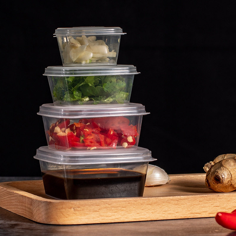 一次性餐盒圆形打包盒长方形饭盒加厚食品级塑料碗外卖盒家用带盖