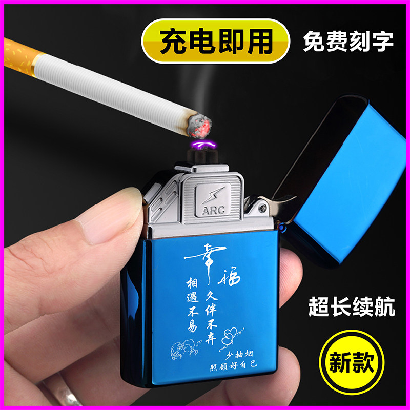 USB网红充电防风双电弧打火机创意 潮商务生日礼品刻字DIY男 个性