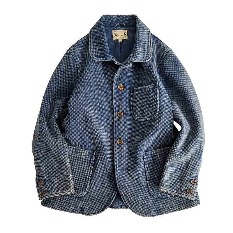 西里布蓝染全棉剑道夹克西服外套咔叽复古休闲非rrl porterclassi