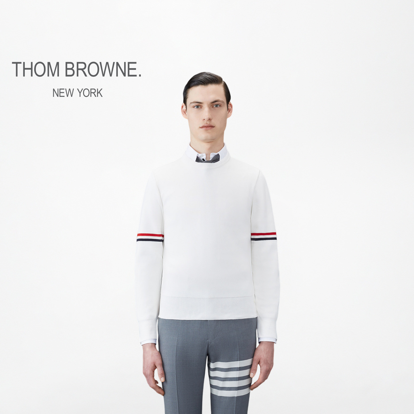 男士 BROWNE THOM 条纹纯棉圆领针织套头衫 6期免息