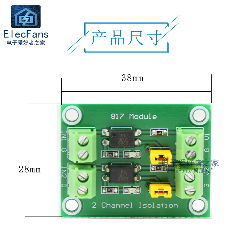 两路 PC817光耦电压控制转接驱动模块 光电隔离器 电压隔离板 2路