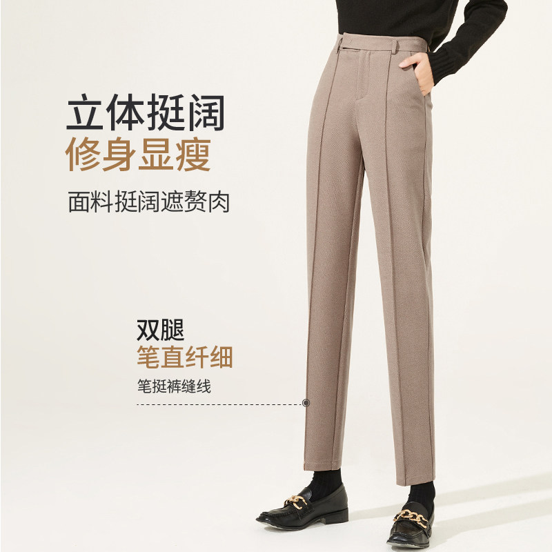 直筒宽松高腰显瘦哈伦职业裤 女2025冬新款 裤 逸阳加厚防风毛呢西装