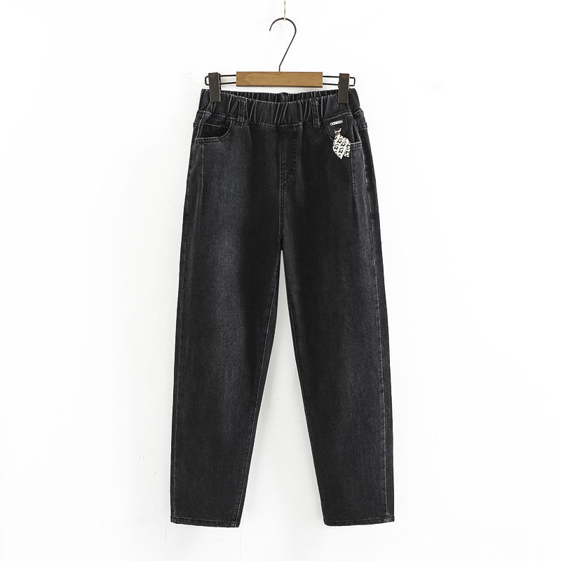 胖妹妹显瘦哈伦老爹裤 秋季 松紧腰弹力牛仔裤 子女潮ins大码 200斤 裤