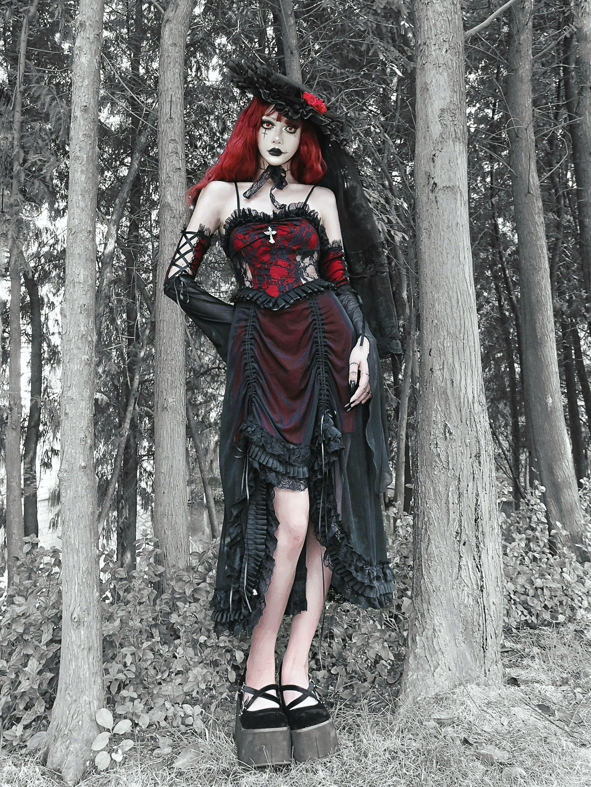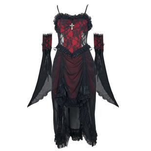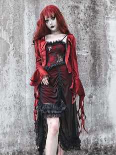 血液供给原创 哥特黑红抽绳哥特暗黑蕾丝吊带连衣裙 夜访吸血鬼