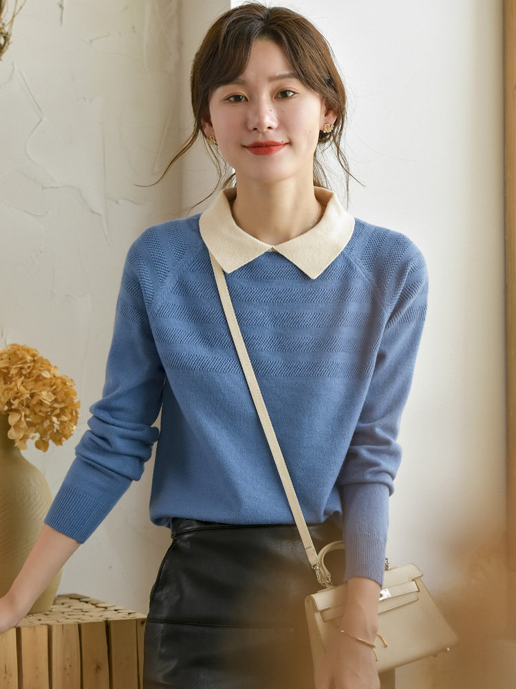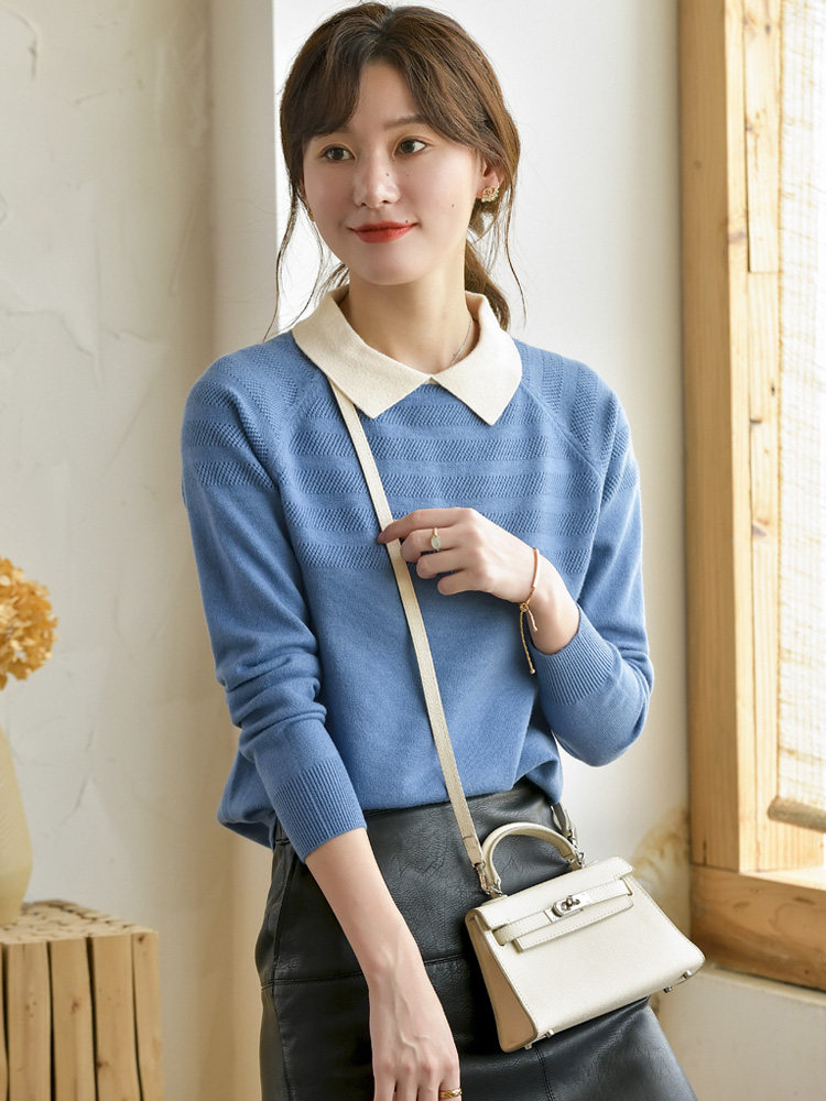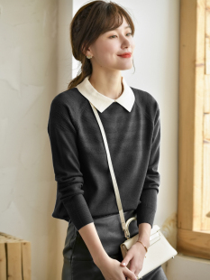娃娃领毛衣女春秋冬2025新款 高级感内搭翻领针织上衣 polo打底衫