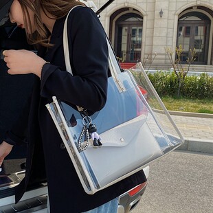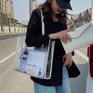 pvc透明包包女2025夏天新款 百搭单肩包大容量托特包果冻包 潮时尚