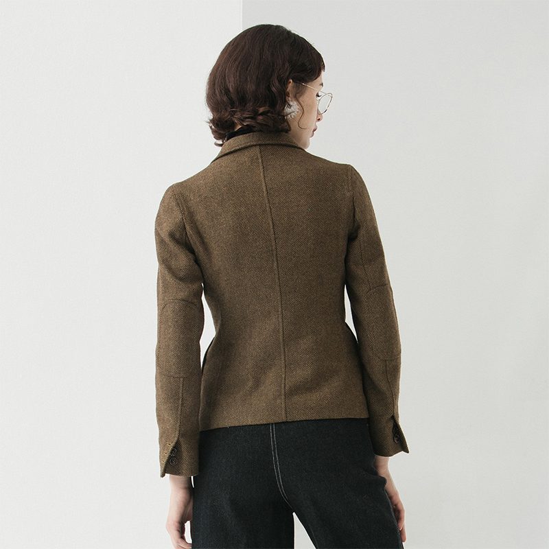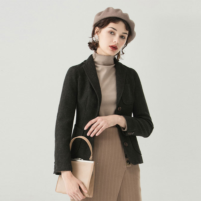 白鹿语翻领单排扣老钱风西装 毛呢外套女 春秋休闲通勤ol风简约修身