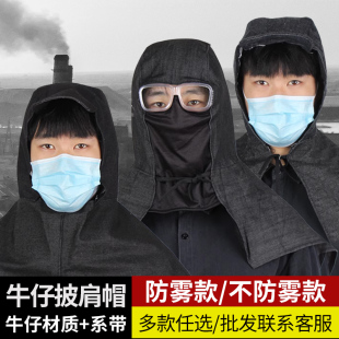 防尘披肩帽男女牛仔布耐用套头系带劳保披风帽防粉尘灰尘搬运工作
