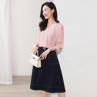 套装 璐丝百丽2025夏季 时尚 两件套气质高级感七分袖 女 套裙职业装