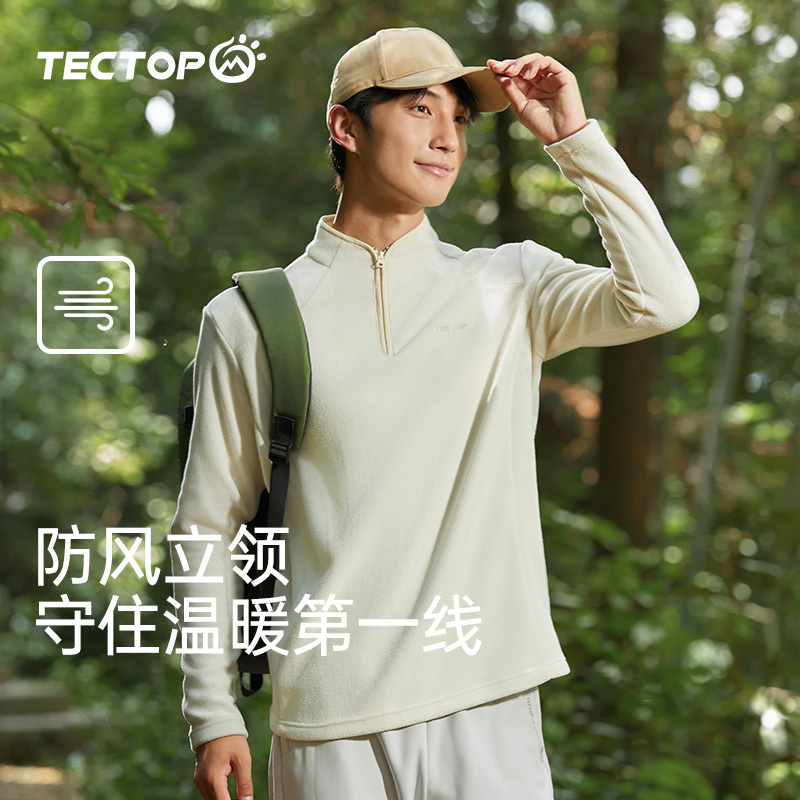 TECTOP探拓休闲抓绒衣新款 摇粒绒外套 加绒加厚卫衣男女套头半开衫