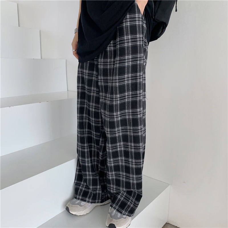 Pants Women Leg 3XL Trouser Wide Plaid Loose Oversize Casual