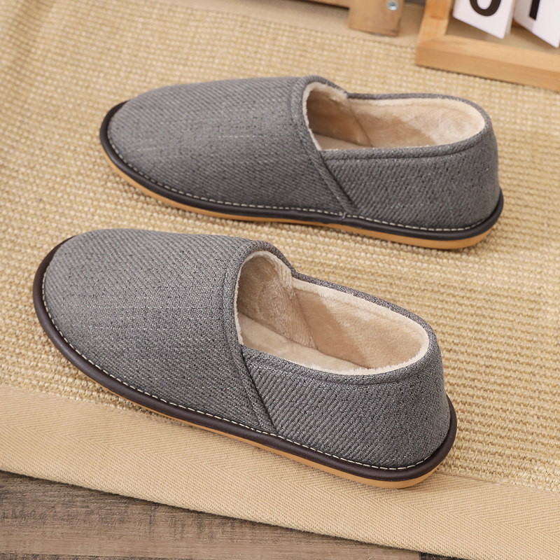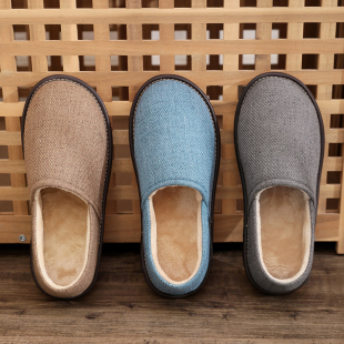 棉靴家用老人 居家室内防滑透气软底保暖拖鞋 男女包跟棉拖鞋 秋冬季