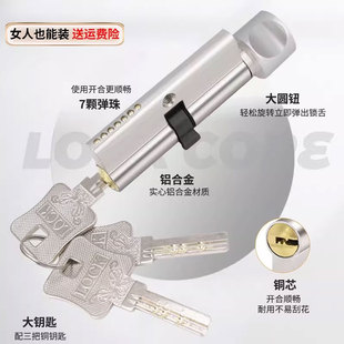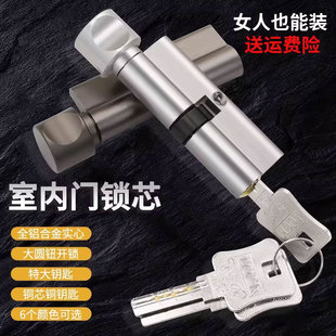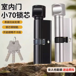 房门小70全铜锁芯门锁配件通用型钥匙反锁头木门换锁铜芯锁心锁体
