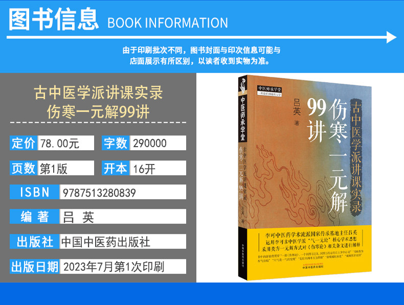 中国中医药出版 古中医学派讲课实录伤寒一元 中医书籍大全 正版 社9787513280839 解99讲吕英著