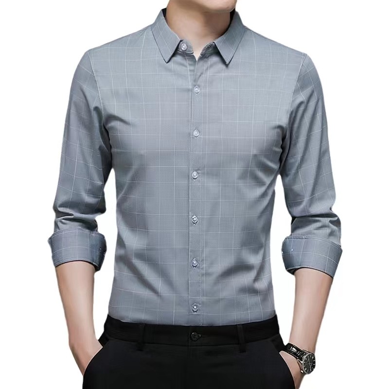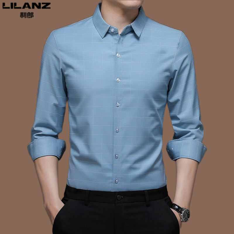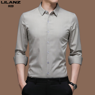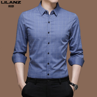 春季 修身 薄款 利郎男装 商务休闲免烫抗皱寸衫 衬衫 格子衬衣男士 长袖
