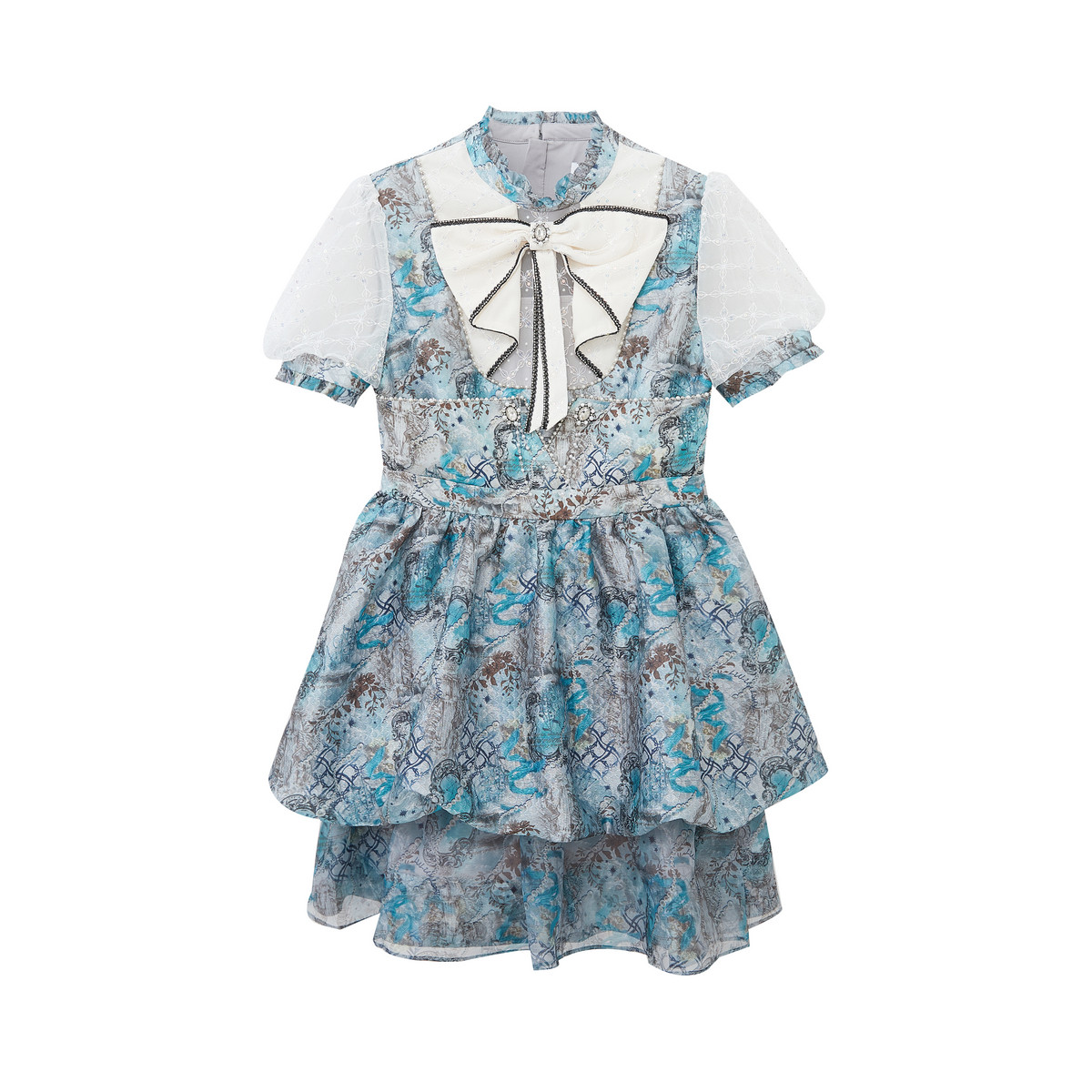 千金风连衣裙蝴蝶结拼接假两件蓬蓬小黑裙 法式 越韩小鱼 古早特调
