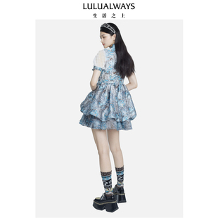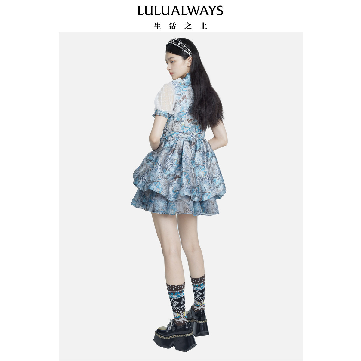 粉荔漫舞 蕾丝蓬松蛋糕裙摆连衣裙加绒 复古法式