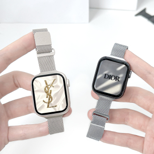 9纤细表带苹果手表8 se双节简约星光色表带 适用applewatchS11米兰尼斯表带小蛮腰iwatch磁吸金属S10