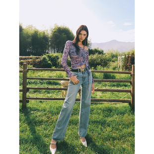 阔腿牛仔裤 叛逆甜心直筒裤 MasionWester新品 通勤简约减龄 折