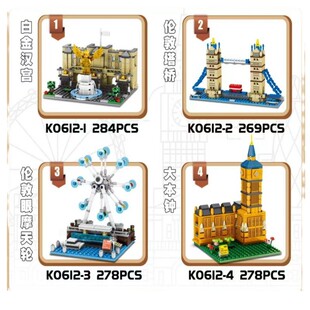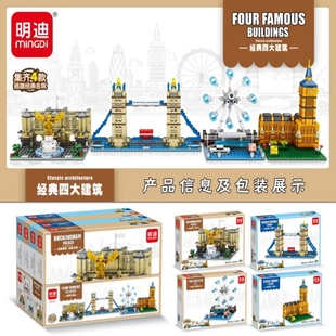 明迪0612建筑伦敦塔桥大本钟街景模型益智拼装 普通塑料积木玩具