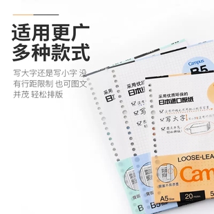 KOKUYO国誉活页替芯26孔B5活页纸campus横线空白笔记本本子可替换芯纸活页本内页纸20孔A5方格纸 保障 正品