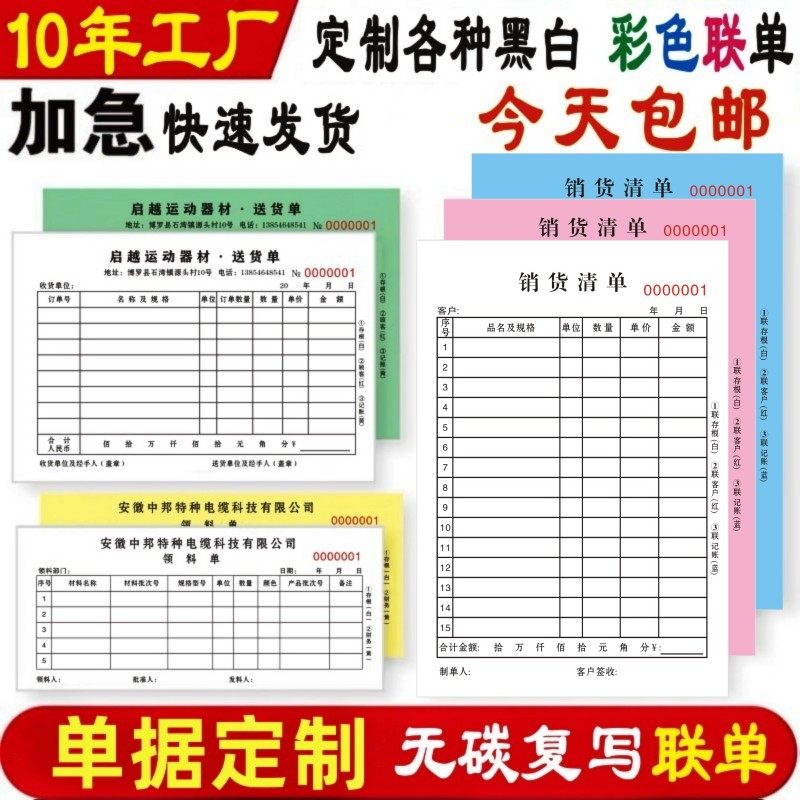 点菜单订做票据出库开单本四联复写本 送货单二联三联收据订制销货清单销售印刷合同发货两联收款 单据定制
