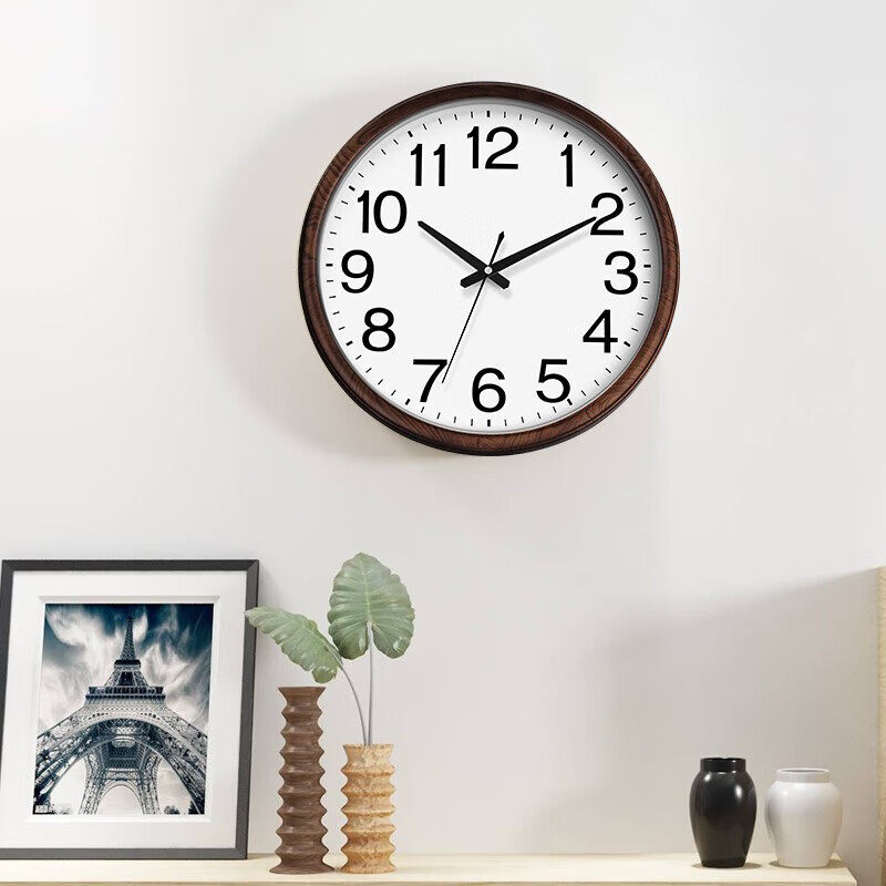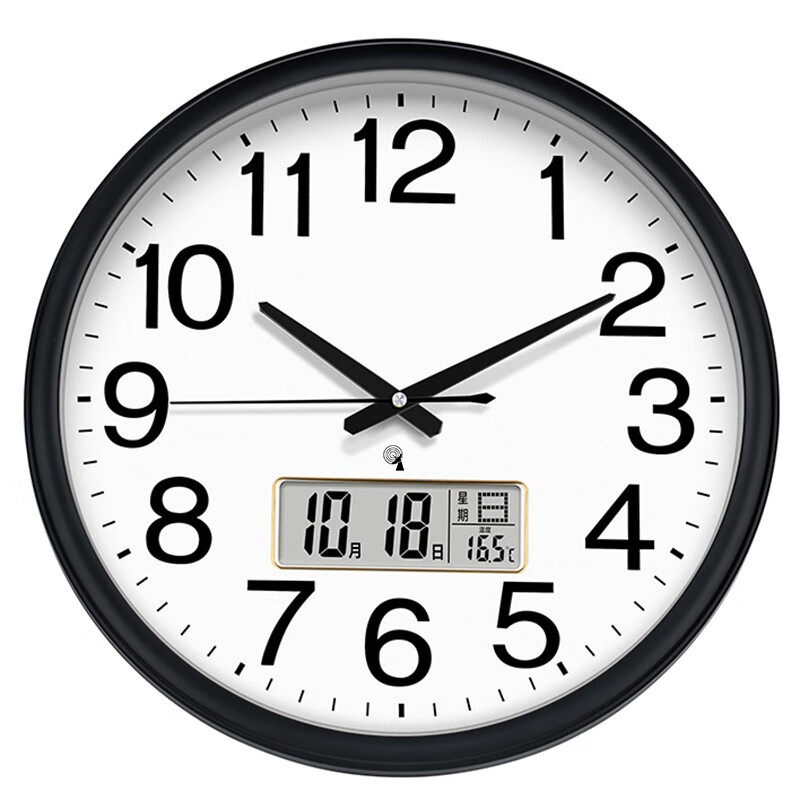 电波钟大数字万年历挂钟夜光大尺寸静音挂墙石英钟16英寸简约时钟