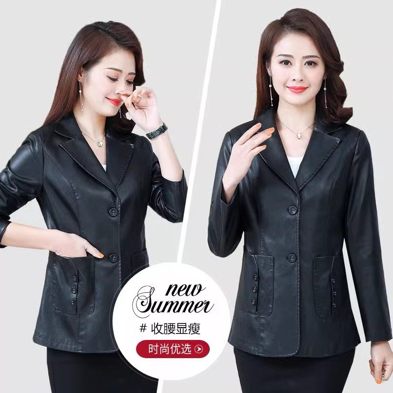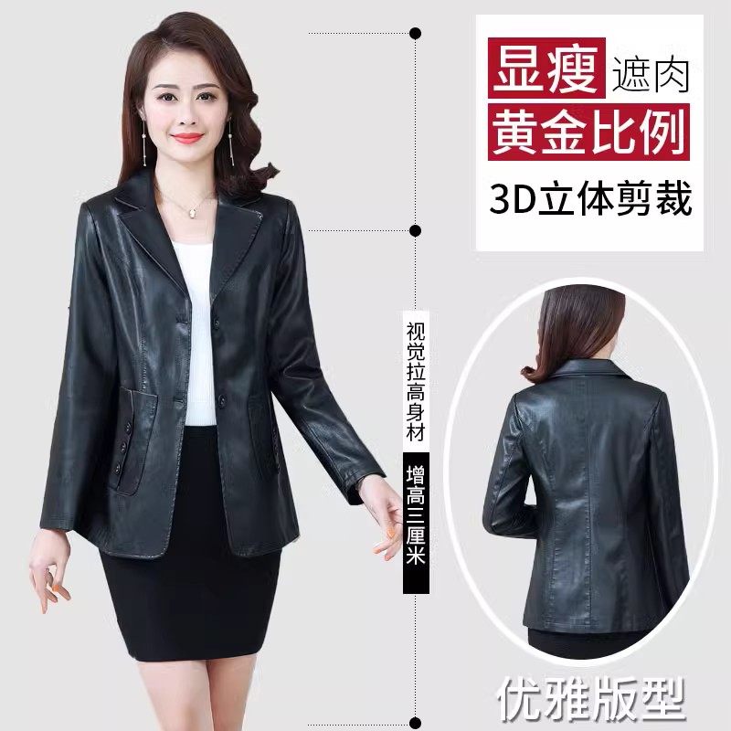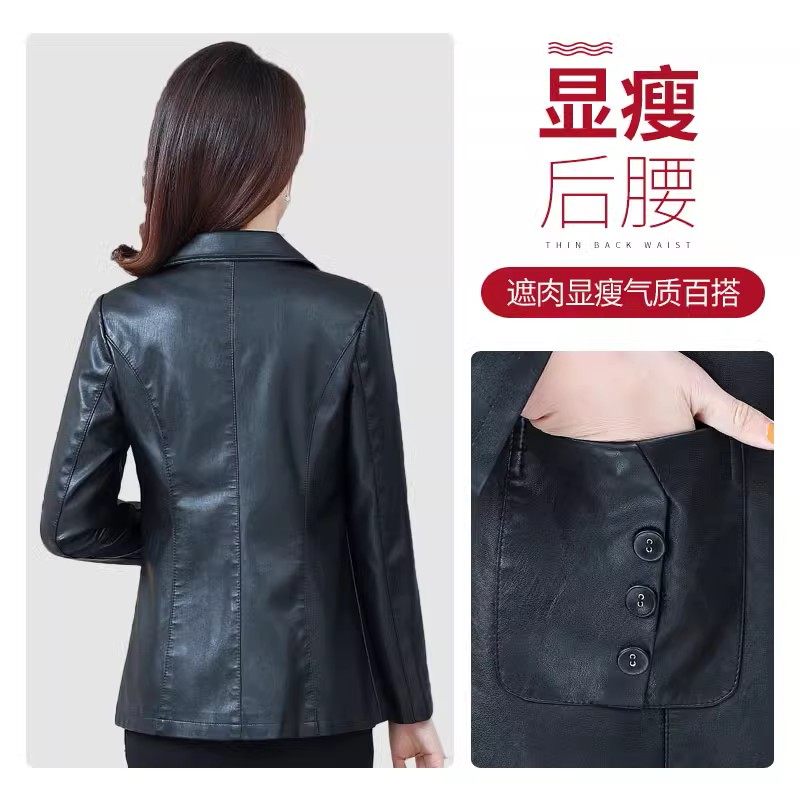 蜡感硬挺皮料 JCAESAR 异形领按扣皮衣 JACKET 下摆开叉 LEATHER