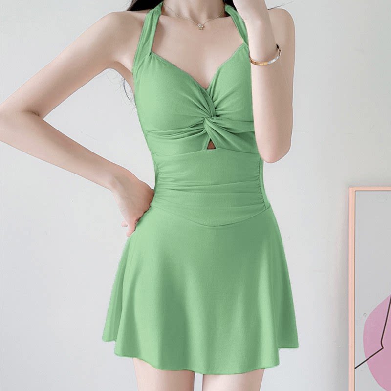 保守显瘦小个子纯欲风遮肚显瘦泡温泉泳装 韩国新款 泳衣女连体裙式
