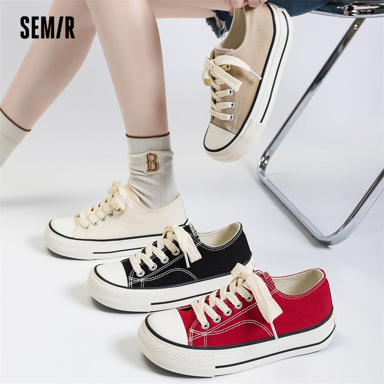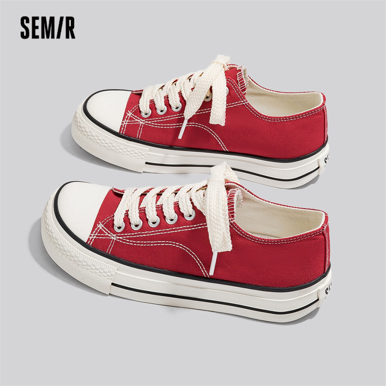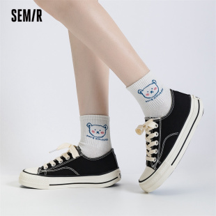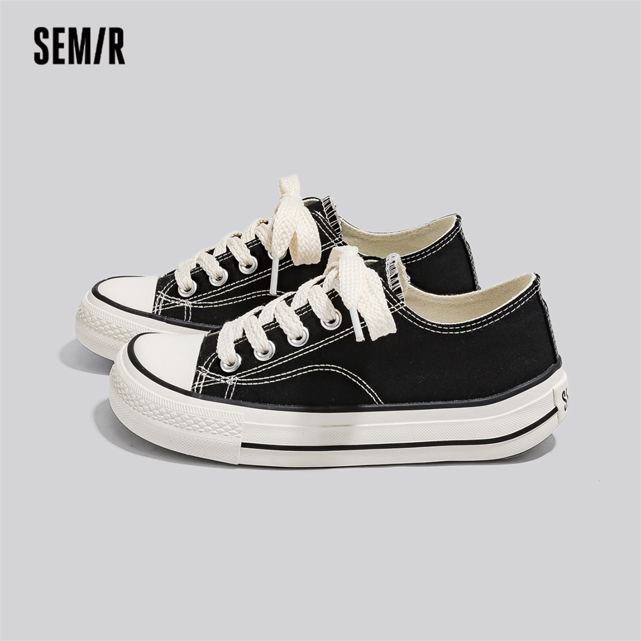黑色帆布鞋 休闲布鞋 2026新款 厚底百搭运动板鞋 子 春夏季 Semir女鞋