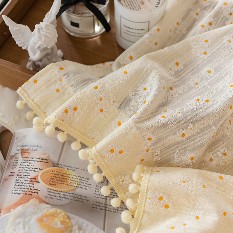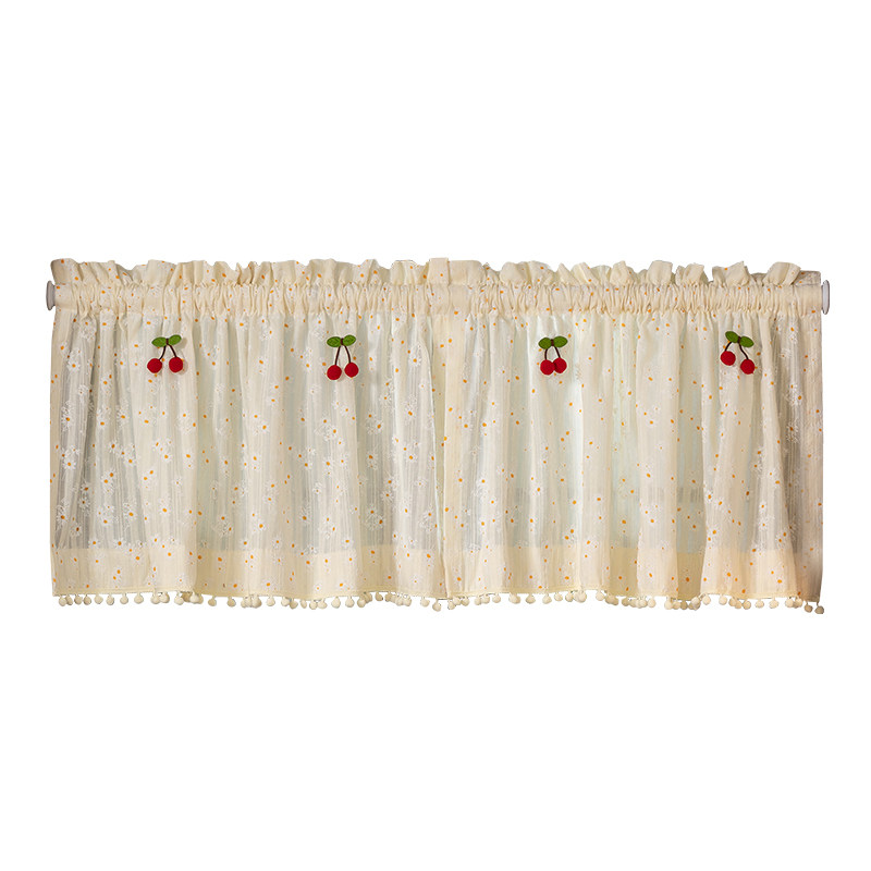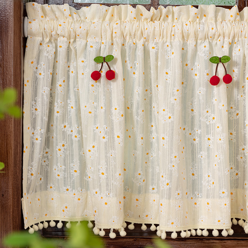 法式 田园风碎花雏菊奶油色窗帘女生卧室门帘免打孔魔术贴短帘半帘