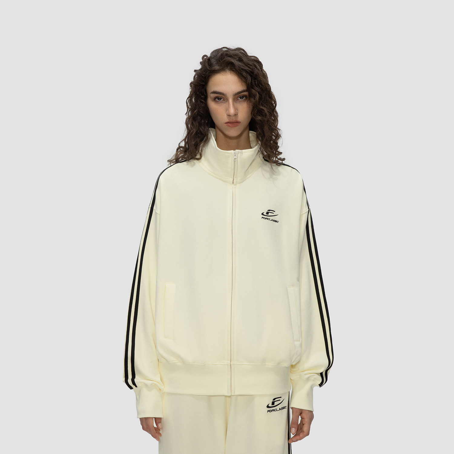 情侣套装 复古条纹印花夹克外套男女春秋潮牌运动休闲裤 美式 FDR