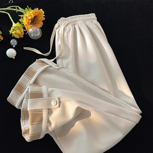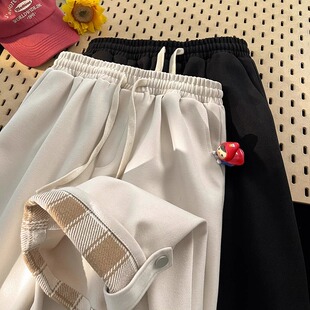 学生直筒卫裤 子男女春秋设计感翻边格子宽松薄款 300斤休闲裤 大码