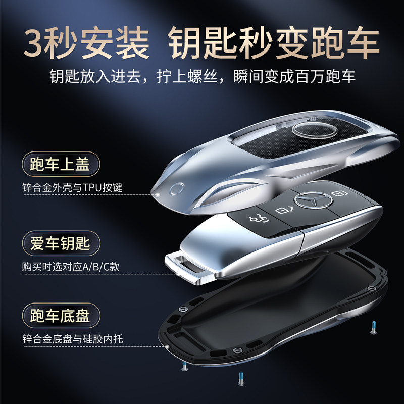 奔驰钥匙套GLC车C260L扣E300L壳GLA包C200男A200L女GLB适用GLE350