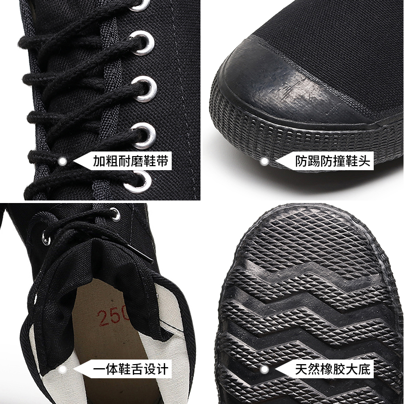 耐磨迷彩鞋 回力解放鞋 男女春秋工地干活高帮劳保透气帆布黑军训鞋