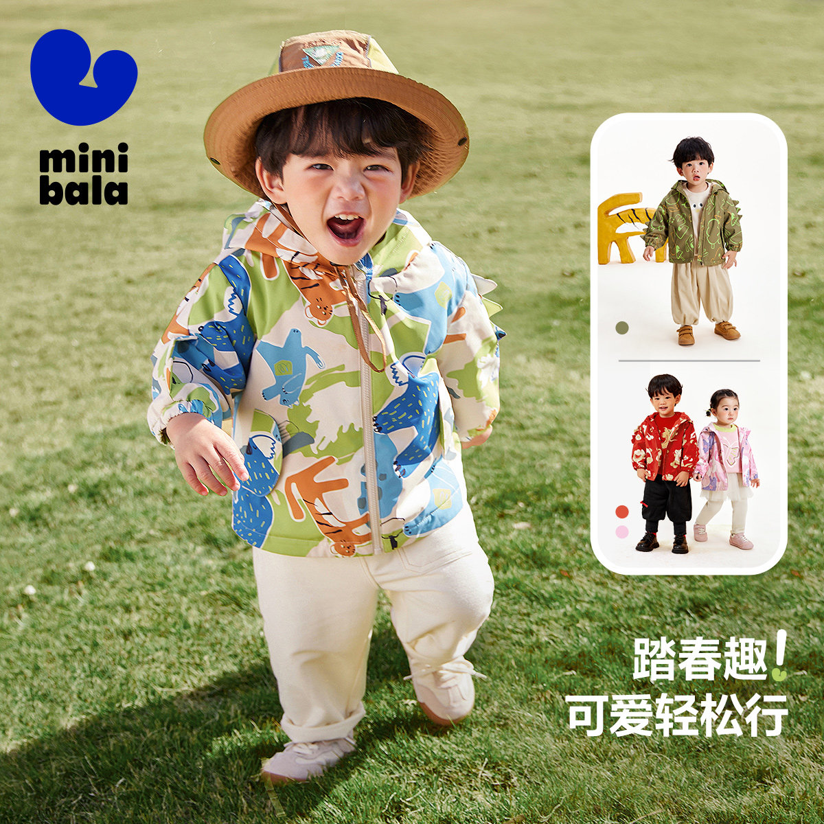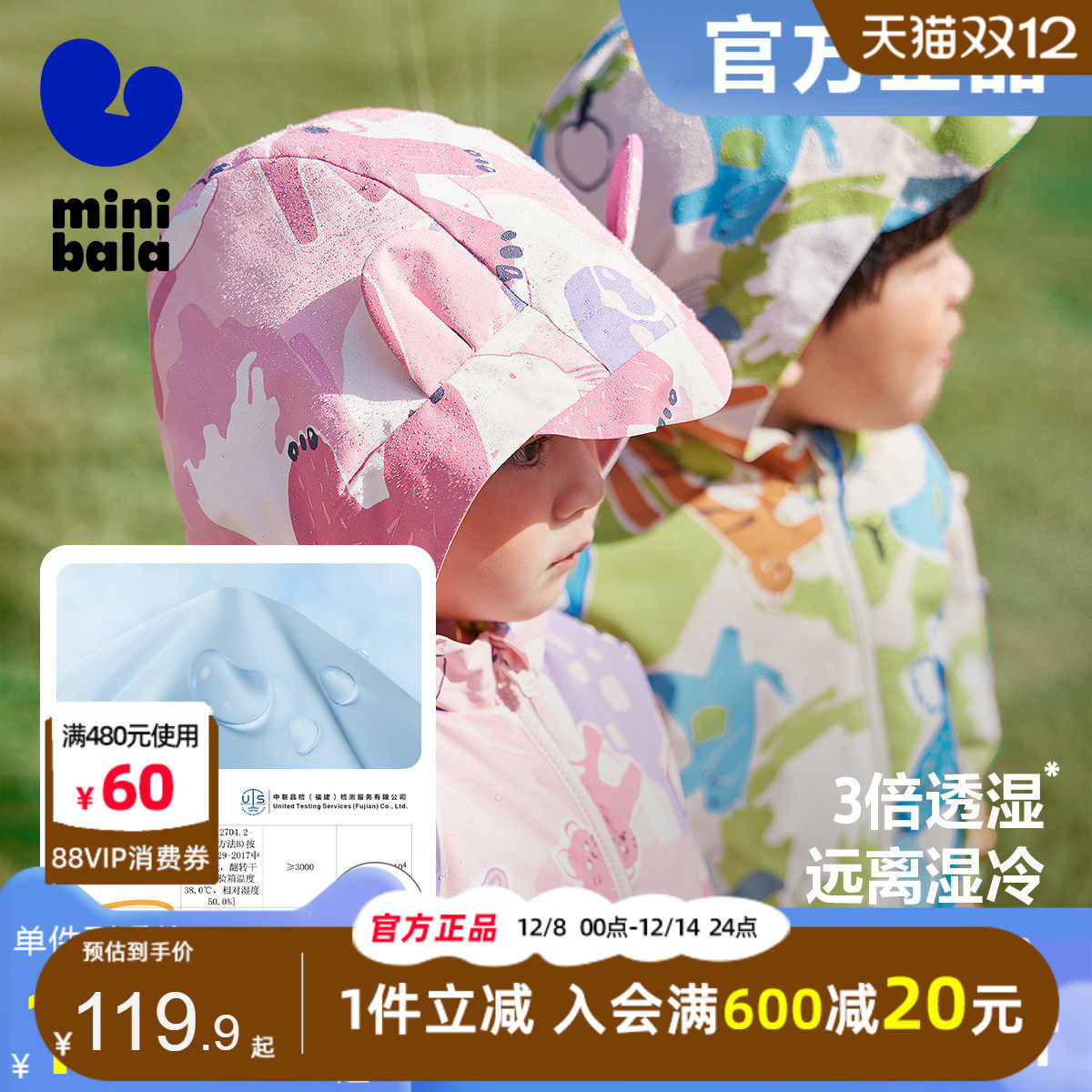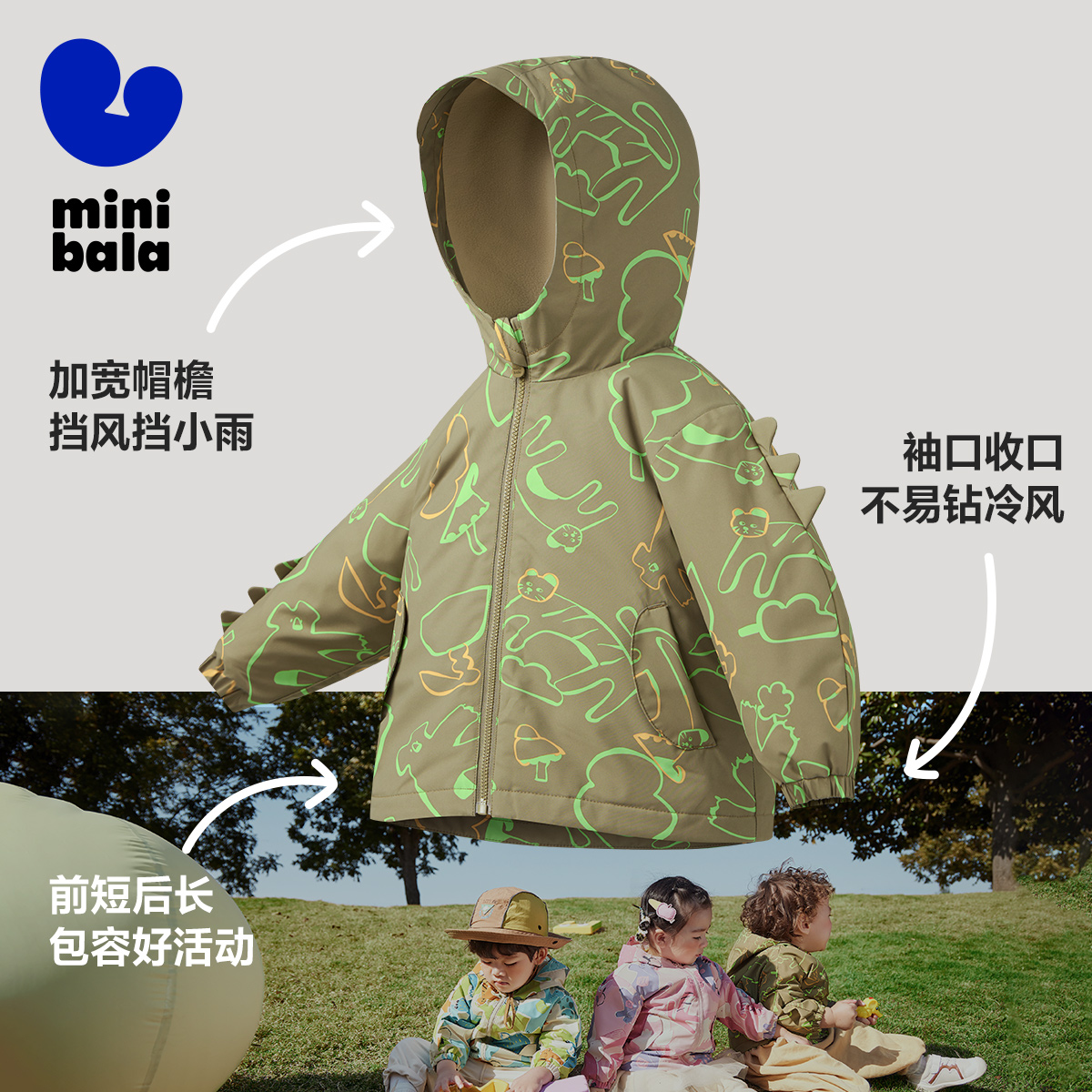 迷你巴拉巴拉男童女童加绒外套2024春装 儿童宝宝三防冲锋衣潮 新款