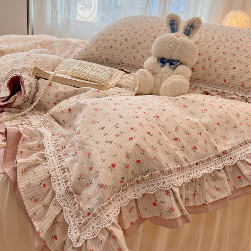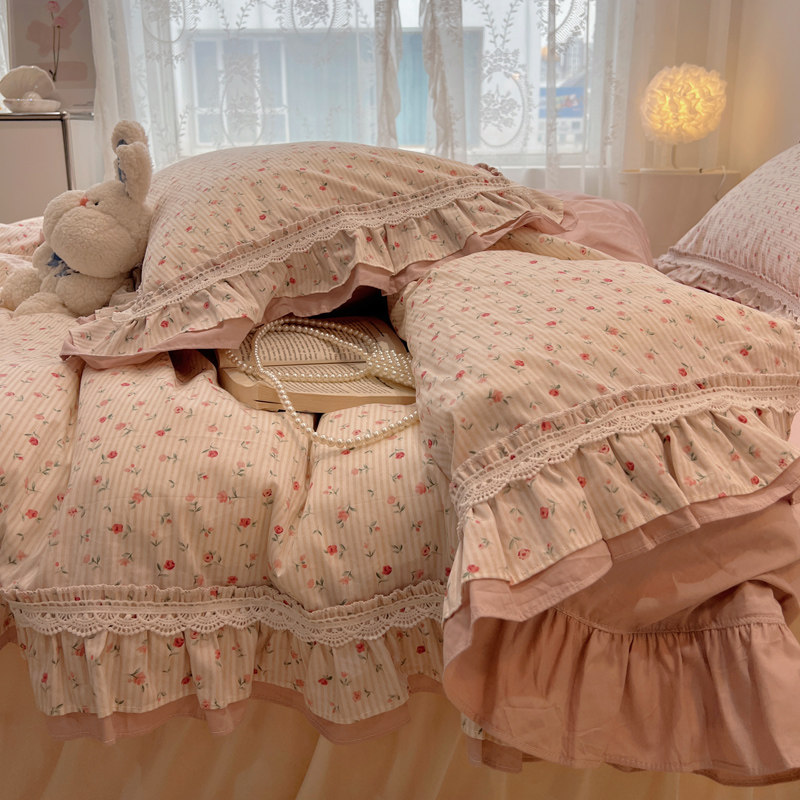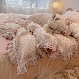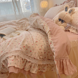 韩国ins全棉花边款 荷叶边亲肤少女心田园床品 四件套仙女款