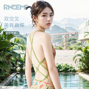 atlanticbeach法式 复古泳衣女泡温泉度假连体性感露背显瘦高级感