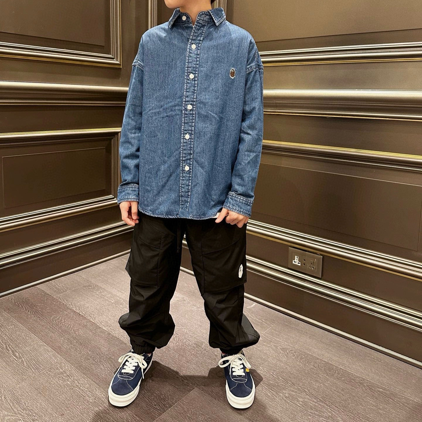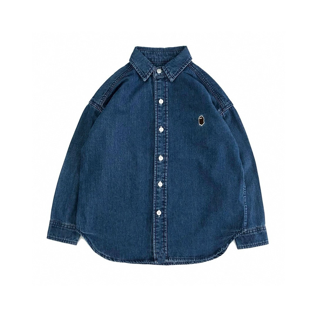日系潮牌童装 26新款 上衣中大童复古牛仔色衬衣 春秋季 男童牛仔衬衫