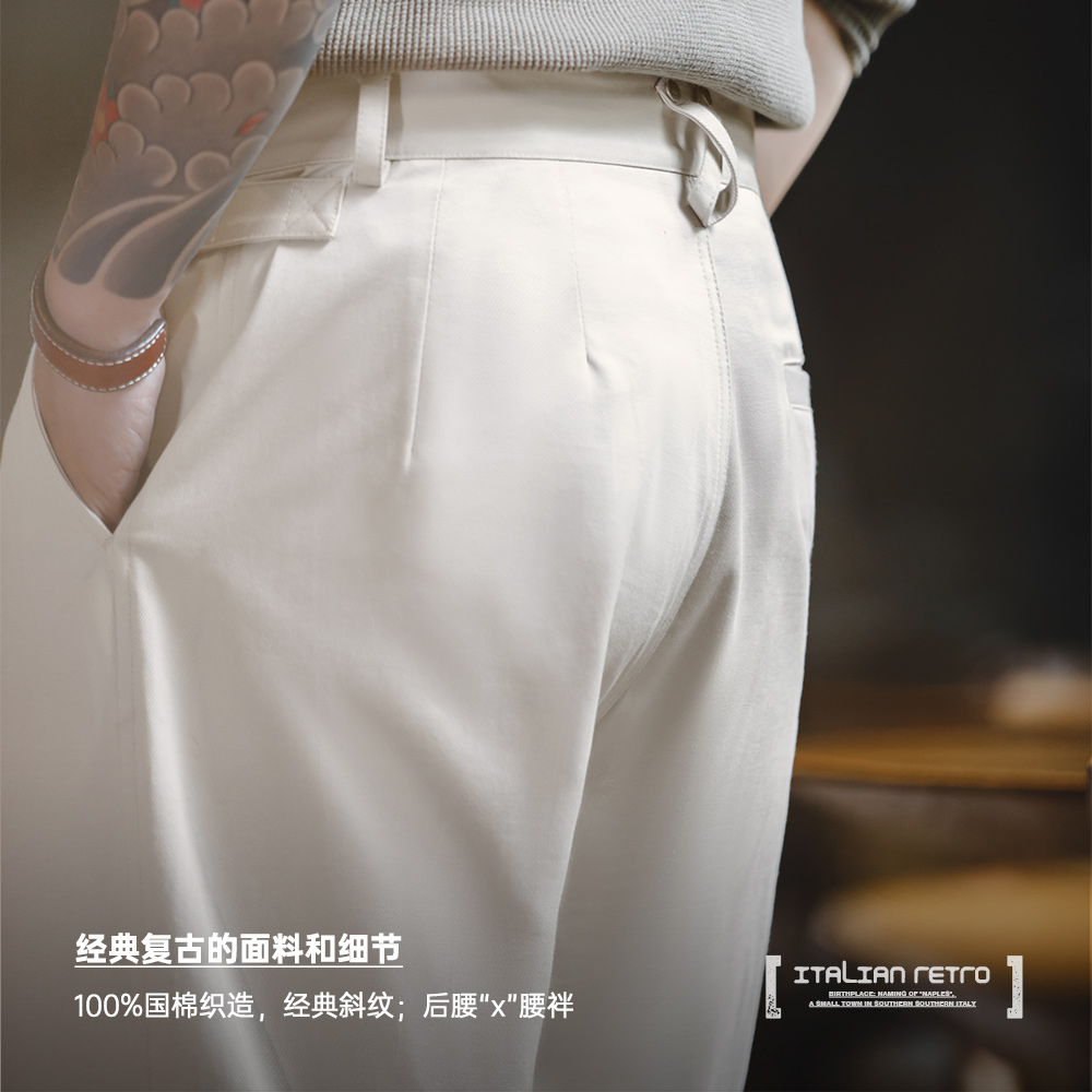 绅士巴黎扣直筒休闲廓尔格西裤 复古那不勒斯长裤 男春 美式 马登工装