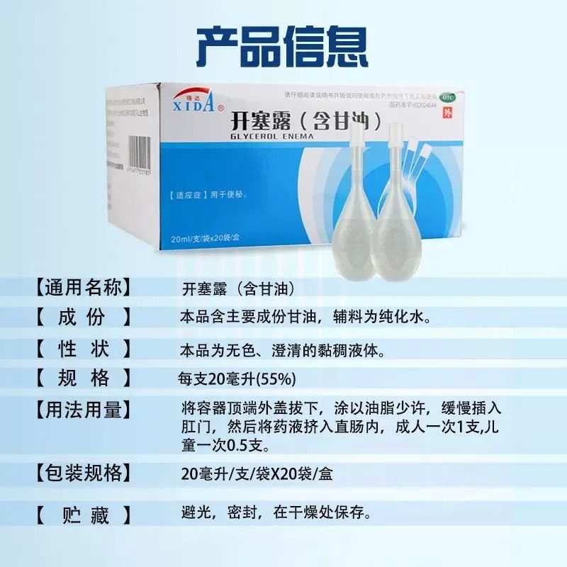 锡达开塞露20ml 盒含甘油便秘儿童官方旗舰店成人通便用批发 20支