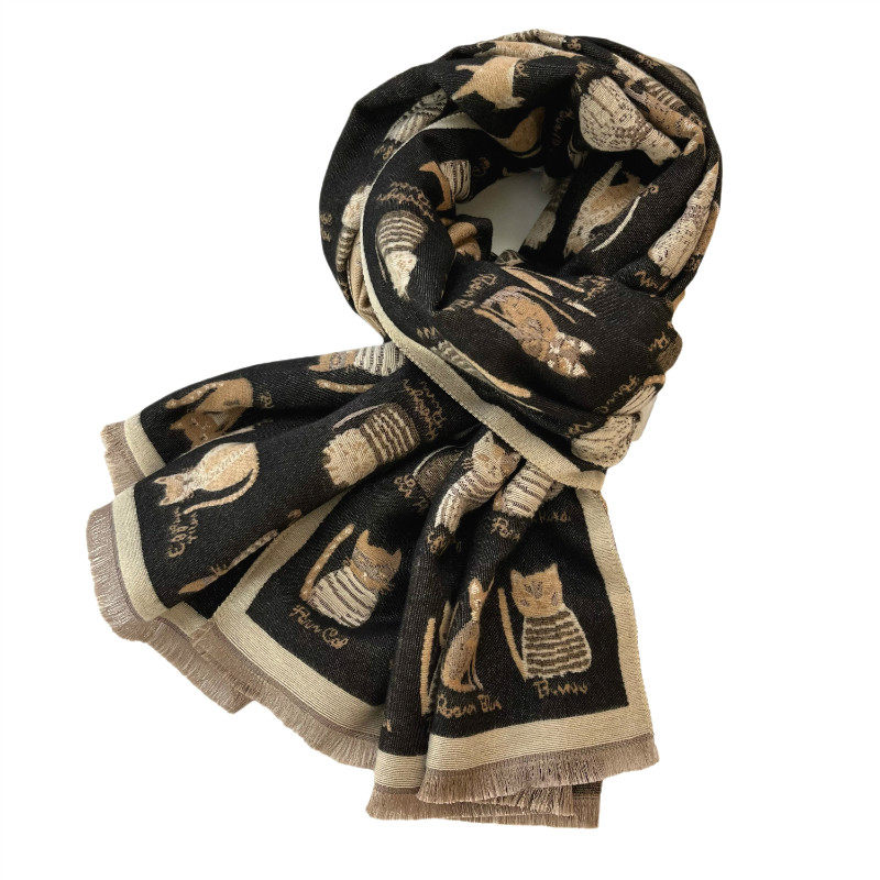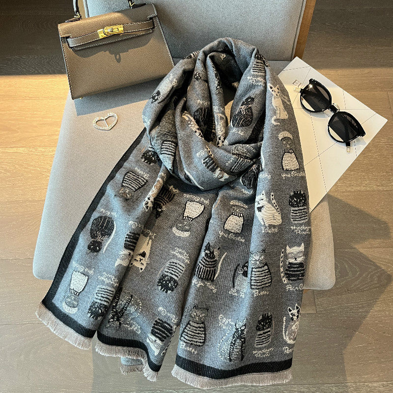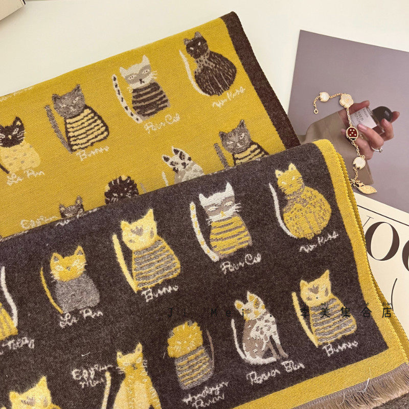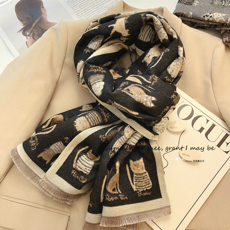 可爱猫咪围巾女冬季 百搭加厚保暖仿羊绒高级感披肩 2025韩版