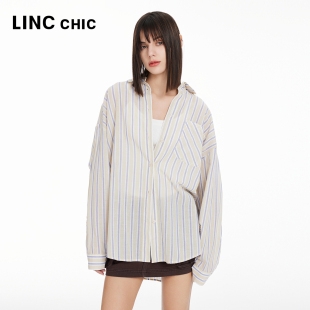 LINC金羽杰2024年春夏季 女S241SH187Y 轻透宽松落肩造型感条纹衬衫