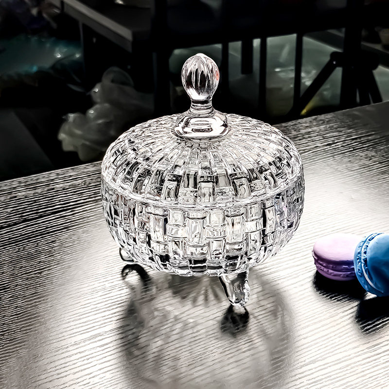 法式 轻奢水晶玻璃糖果罐精致玻璃碗透明糖缸零食首饰收纳罐高颜值